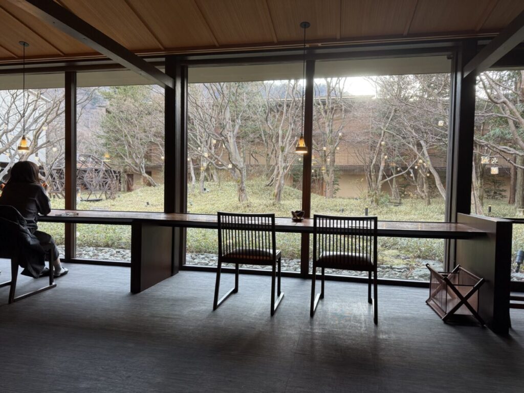 お風呂から上がった後も、まだ時間には余裕があります。 お部屋に戻り、あの大きな窓の前の特等席に腰掛けて、最後のお茶を一杯。 「帰りたくないね」「また半年間頑張って予約取ろうね」と、友人と今回の旅の思い出を語り合いました。